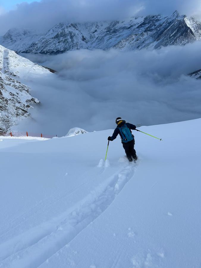Wer träumt nicht von endlosen Tiefschneeabfahrten? In Saas Fee sind die Bedingungen dafür optimal. Die Höhenlage bis hinauf auf 3600m und die fast überwiegende Nordausrichtung der Hänge sind das Rezept für guten Schnee.
