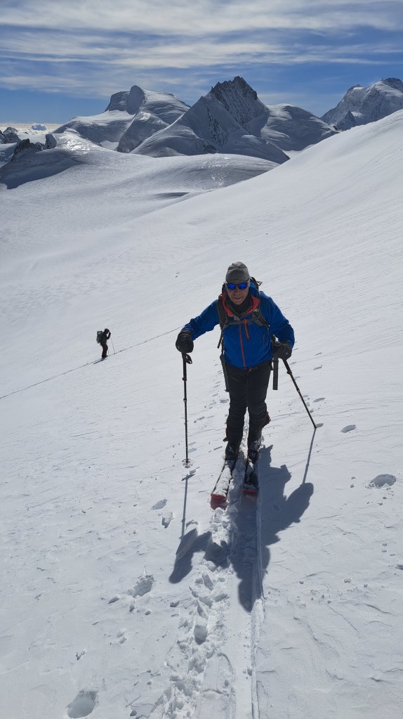 | Tourenprogramm: 1.Tag: Wir besprechen die Tour bezüglich Wetter und Verhältnissen vorgänig. Treffpunkt morgens am Schlepplift Kalbermatten. Mit den Seilbahnen hinauf zum Mittelallalin. Über Skipisten fahren wir ab bis auf 3100m. In angenehmer Steigung geht es über den Feegletscher hinauf. Der steile Osthang vor dem Gipfel fordert unsere Kondition und Spitzkehrentechnik. Danach ist es nicht mehr weit bis wir ganz oben stehen. Wir geniessen die Aussicht und freuen uns auf die Abfahrt. Diese weist ideales Skigelände auf und hat meist guten Pulverschnee. Zurück in Saas Fee können wir unsere Abfahrtsspuren nochmals betrachten. Gz 6 h / ↑ 1100 Hm ↓ 2500 Hm |